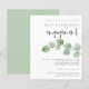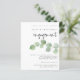 Uma alternativa de orçamento com bom custo-benefício em um tamanho menor 4,5 x 5,6” semi-brilho 110lbs de peso, que é de espessura semelhante a um cartão postal (no entanto, não é adequado para uso como cartão postal). POR FAVOR, OBSERVE que há UM convite por folha. Convite de Noivado de Eucalipto Verde. Estilo moderno minimalista com um único ramo de folhas de eucalipto verde ao longo da página a partir do lado esquerdo. O noivado é definido em um estilo de escrita informal e é colocado acima das folhas junto com seus nomes, com os outros detalhes abaixo. Personalize facilmente os detalhes para os seus. Um fundo verde Sage coordenado está no verso. Você pode alterar as cores do texto e do fundo para qualquer uma de sua escolha para combinar com o tema de cores do seu casamento.