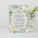 Um charmoso quadro floral pintado à mão com rosas brancas e folhagens rodeia o texto do convite do seu casamento. Exibido aqui sobre um fundo cinza-claro, é possível alterar a cor cinza para qualquer outra (inclusive branco), bastando para isso escolher "personalizar" e selecionar uma cor de fundo diferente.