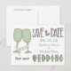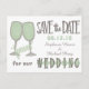 Este é um convite de noivado Save the Date moderno e fofo, com uma imagem de duas taças de vinho verde-menta com "para sempre" sobre os pés. Suas informações estão em texto estilizado verde-menta e cinza combinando. A parte de trás tem um campo de texto extra, se necessário. Divertido e memorável! *A arte gráfica usada neste design é de propriedade da Encore Software, Inc., que permite o uso a seus licenciantes. Todos os direitos reservados.