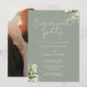 Este convite de noivado elegante em verde de salvia com flora pode ser personalizado com suas informações em tipografia sofisticada com sua foto no verso. Desenhado por Thisisnotme©