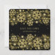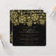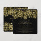 Modelo de convite de "Noivado de Natal em Dourado e Preto" moderno e elegante, com flocos de neve brilhantes dourados e luzes em fundo preto.