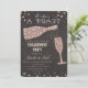 Convite de Noivado de Jantar com Taça de Vinho com Diamante em Rose Gold e Quadro de Giz com Confetes