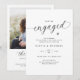 Convide os convidados para celebrar o casal feliz com esses convites de noivado elegantes. Projetados num estilo minimalista moderno preto e branco, eles apresentam tipografia de roteiro elegante e um layout simples e sofisticado. A foto do casal no verso adiciona um toque pessoal, tornando esses convites elegantes e atemporais perfeitos para receber a celebração especial do casal noivado.