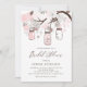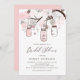 Convide os convidados para o seu evento com este convite de noivado personalizável. Ele apresenta alegres potes mason rosa claro, cordas de coração e flores. Personalize este convite de noivado em pote mason adicionando seus detalhes. Este convite de noivado personalizado é perfeito para noivados de primavera e inverno. Está disponível em outras cores e tipos de papel.