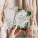 Celebre o futuro Sr. & Sra. com este convite de noivado tropical ousado e lindo. Com folhas de palmeira verde ricas, uma flor de hibisco vermelha impressionante e sutilhas de estampa de leopardo, é a combinação perfeita de charme exótico e glamour moderno.