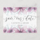 Cartão de anúncio de salvamento da data com obra de arte original em aquarela. Deixe seus convidados saberem com estilo, com este design elegante e sofisticado. Obra de arte original de flores de magnólia e margaridas bonitas com uma sobreposição de gradiente sutil. A escrita à mão moderna dá a este design um toque de elegância. Fácil de personalizar com seus detalhes pessoais.