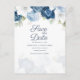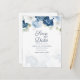Cartão de anúncio de noivado Floral Script Azul Poeira. Ótimo para o seu anúncio especial e fácil de personalizar clicando no botão "Personalizar". Com flores modernas e script