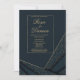 Um convite de noivado geométrico elegante e sofisticado azul marinho e dourado. Este convite moderno e abstrato é perfeito para qualquer garota chic e sofisticada. Este design é ideal para um evento de festa elegante e moderno. Personalize este design com sua própria mensagem e informações personalizadas. Todos os designs são impressos