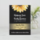Desenho de girassol deslumbrante em um fundo preto anunciando a data do seu casamento. Veja o convite coordenado e os cartões de agradecimento.