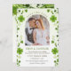 Cartão de foto de save the date com imagens de trevos irlandeses e espirais. Você pode ajustar o texto de acordo com sua necessidade e colocar sua foto para completar.