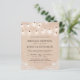 Surpreenda seus convidados com este convite de casamento elegante com belas lâmpadas de corda e renda branca com tipografia moderna em um fundo rústico de sarja. Basta adicionar os detalhes do seu evento neste modelo fácil de usar para torná-lo um convite único.