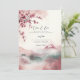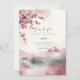 Um design moderno com paisagem coreana em tons rosa e sakura, convite de casamento tradicional coreano.