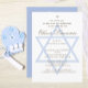 Um garoto da cerimônia hebraica convidando para um Dia de Nomeação. O modelo tem um design com o tema azul com a Estrela de David na frente. O modelo de design é com um texto dourado que é facilmente alterado para suas informações. Escolha entre uma faixa de tipos de papel. O reverso tem uma estrela branca de David repetindo em um fundo azul.