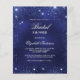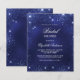 Um convite moderno, na moda, glamouroso para um Chá de panela. Um fundo azul marinho, decorado com faíscas de brilho. A cor azul é irregular. Personalize e adicione um nome e detalhes da parte. 1 folha = 1 convite impresso de borda a borda.