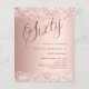 Um convite moderno e na moda para uma 60ª festa de aniversário. Decorado com confete. fundo de gradiente rosa dourado e a palavra Sessenta escrita com letras elegantes de letras grandes em rosa dourado escuro. Personalize e adicione um nome e detalhes da parte. 1 folha = 1 convite impresso de borda a borda.