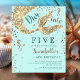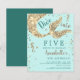 Faça da festa de aniversário da 5 da sua menina uma experiência mágica com nosso convite personalizável para o tema da sereia. Este encantador convite para baratos apresenta uma coroa mágica de sereia em ouro e aqua tons com cavalos de mar bonitos que transportarão seus convidados para um mundo de fantasia submarina. O impressão reluzente adiciona um pouco extra de brilho e glamour ao design. Personalize-o com os detalhes do seu partido e prepare-se para fazer um salto com este convite encantador.