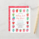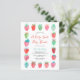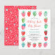 Um convite moderno e doce com morangos pintados à mão em vermelho e rosa com pequenos acentos azuis e verdes.