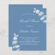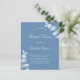 Um fundo azul empoeirado, decorado com caules de eucalipto, galhos. Personalize e adicione um nome e detalhes da parte.