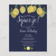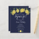 Com limões e folhagens em um fundo azul-marinho, este convite de orçamento para chá de noiva botânico moderno pode ser personalizado com as informações do seu evento especial. Projetado por Thisisnotme©