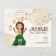 Convite de orçamento de Mehndi com noiva de henna indiana fofa, fundo de mandala e grinaldas de lanternas marroquinas.