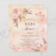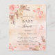 Para um chá de bebê moderno estilo boho. Um fundo falso metálico rústico rosa dourado e rosa. Decorado com flores rosa dourado e rosa, rosas, grama pampas e borboletas. Personalize e adicione um nome e detalhes da festa.