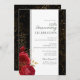 Convites de 15º Aniversário de Casamento com flores góticas vermelhas, respingos vermelhos e pretos, flores douradas. Folhas Florais Douradas Falsas. Fonte script destaca com fonte de nome serif legível. Fácil de ajustar para as necessidades do seu casamento.