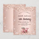 Um fundo rosa de gradiente dourado decorado com faíscas falsas, confete e uma carruagem de safra romântica. Personalize e adicione seu nome, idade, detalhes da festa. 1 folha = 1 convite impresso de borda a borda.