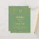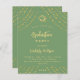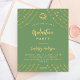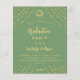 Um fundo verde sage decorado com estrelas douradas falsas e um boné. Personalize e adicione um nome, detalhes da festa e ano. O texto Formatura e o nome são escritos com estilo de letra manuscrita moderna.