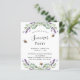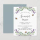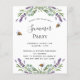 Um fundo branco decorado com flores de lavanda, folhagens de eucalipto e abelhas. Personalize com seu nome e detalhes.