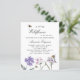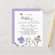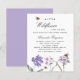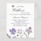 Um fundo branco. Decorado com abelhas e pintado flores silvestres em violeta e rosa. Personalize e adicione um nome e detalhes da parte.
