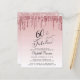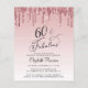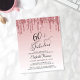 Elegante, chique e acessível convite de festa de 60 anos com "60 & Fabuloso" escrito em letra estilosa contra um fundo rosa ombre, com brilho falso rosa e dourado-rosado pingando do topo.