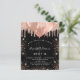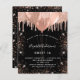 Um fundo preto. Decorado com dourado rosa, pingos de brilho falso cor-de-rosa, visual de tinta pingando e balões. Personalize e adicione um nome, idade 21 e detalhes da festa. O nome é escrito com uma fonte de letra manuscrita