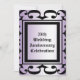Envie este convite elegante para um evento muito especial, ou apenas uma festa divertida. Ele apresenta um padrão de curva de abstrato de ornamentado em volta do texto em um fundo de gradiente violeta pálido. Uma versão menor do design com o mesmo fundo de mola lilática é repetida no verso, junto com todas as informações importantes. O texto está redigido para um aniversário de casamento, mas pode ser facilmente alterado para ajustado de sua única celebração.