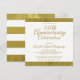 Celebração de Aniversário de 50 anos Convite Dourado. Convide familiares e amigos para um evento especial de celebração de 50 anos de casamento com este cartão dourado e branco projetado com texto e listras em cor dourada. O texto inclui: Celebração de 50 anos de Casamento, Nomes do Casal, Data, Hora e Local, seu RSVP e detalhes do anfitrião. Para personalizar, basta inserir seu texto em nosso modelo fácil, substituindo a amostra. Nota: Este convite está disponível para impressão ou download.