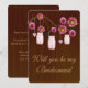 Planejando um casamento? Você precisa de amigos que segurem sua mão, ajudem a organizar e façam você ficar perfeita no seu dia especial. Fazer o pedido de casamento fica fácil com este cartão de convite para ser minha madrinha. Personalize o cartão alterando o texto nos campos fornecidos. Você pode alterar o estilo da fonte, tamanho e cor, tipo e estilo de papel.