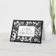 Convite de padrinho de noiva para prima em elegante preto e branco com padrão floral delicado.