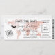 Convite de passagem aérea de casamento save the date com um mapa-múndi de destino em folha de rosa dourado elegante, bússola, avião e um modelo de texto personalizado.