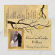 Celebre um aniversário de casamento de cinquenta anos com este adorável convite de modelo de foto. Este design retrata uma árvore com folhas douradas, pássaros de amor e uma moldura para uma foto do casal comemorativo pendurada nos galhos. O verso do convite tem espaço de sobra para informações de celebração. Design original por Night Owl's Menagerie, 2015.
