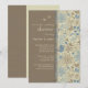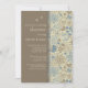 Um convite encantador com um fundo calico apresentando um casal de pássaros entre flores e corações. É sobreposto por um painel de avelã suave que contém sua personalização. Ótimo para usar em anúncios de "save the date", chás de bebê, jantares de ensaio e muito mais.