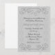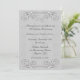 Elegante convite de festa de 25º aniversário com bordas superior e inferior de pergaminho ornamentado com relevo prateado. Os convites vêm completos com envelopes e escolha de papel.