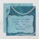 Convite de Pérolas Azuis Elegantes & Cartão de Anú