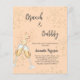 Um convite moderno, na moda e glamouroso para um Chá de panela de bolinho. Um fundo cor de pêssego com bolhas, um par de flautas, óculos. O nome é escrito com um moderno estilo escrito à mão. Personalize e adicione os detalhes da sua festa. 1 folha = 1 convite impresso de borda a borda.