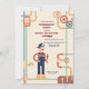 Um convite masculino das tubulações e das engrenagens com uma figura do mecânico ou do canalizador. (Veczy) <br/><br/>O cartão é fácil de personalizar com seus fraseio, pia batismal, cor da pia batismal e escolha de seis tipos de papel<br/><br/>Não exatamente que você está procurando? Todos nossos produtos podem ser projetados para encontrar suas necessidades em nenhuma sobretaxa<br/><br/>Contacte-nos simplesmente em askpixieprints@aol.com. <br/><br/>Produtos de coordenação disponíveis:
