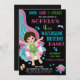 Convite de aniversário de água Convite de piscina de garota. Venha fazer um salto com este belo convite para o aniversário da diversão da água das meninas, com escorrega de água, morena e alguns equipamentos de piscina. Basta editar este modelo fácil de usar no menu Personalização para torná-lo especial.