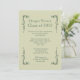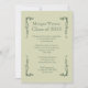 Um convite de estilo clássico com filigranas de canto decorativo em verde-floresta e preto sobre fundo verde-claro. Escolha uma fonte de rico para torná-la sua. Adequado para qualquer ocasião ou sexo. br/>O convite é fácil de personalizar com seu texto, fonte, cor da fonte e escolha de seis tipos de papel.