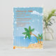 Um convite tropical relaxado com palmeiras de coco em arredores de praia. O estilo grunge é casual e despreocupado.