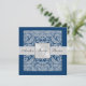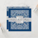 Faça uma indicação elegante com nossos prata & convite azul do casamento da beira do damasco do monograma. Inteiramente customizável.