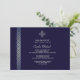 Este convite elegante tem um fundo azul profundo com uma beira prateada da fita. A cruz caracterizada pode ser arrastada a todo o lugar, feito maior ou menor (+-) ou eliminado fazendo a isto um convite versátil.