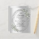 Um fundo de olhar mal prateado. Decorado com verde e quadro oval. Personalize e adicione um nome e detalhes. 1 folha = 1 convite impresso de borda a borda.