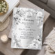 Um fundo de olhar mal prateado. Decorados com flores e uma fita e arcos de prata falsos. Personalize e adicione um nome e detalhes. 1 folha = 1 convite impresso de borda a borda.